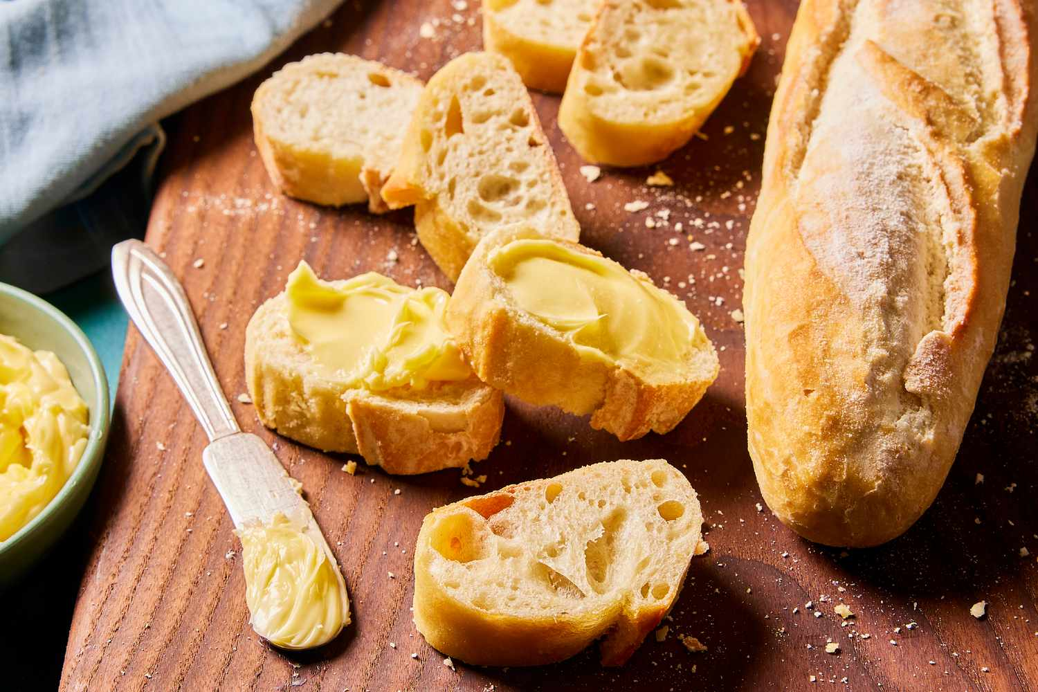 Baguette là loại bánh mì dài, vỏ giòn, ruột mềm và thơm mùi bột nướng đặc trưng. Đây là món ăn quen thuộc trong đời sống hàng ngày của người Pháp, thường dùng vào bữa sáng hoặc ăn kèm với phô mai, pate, thịt nguội và bơ.