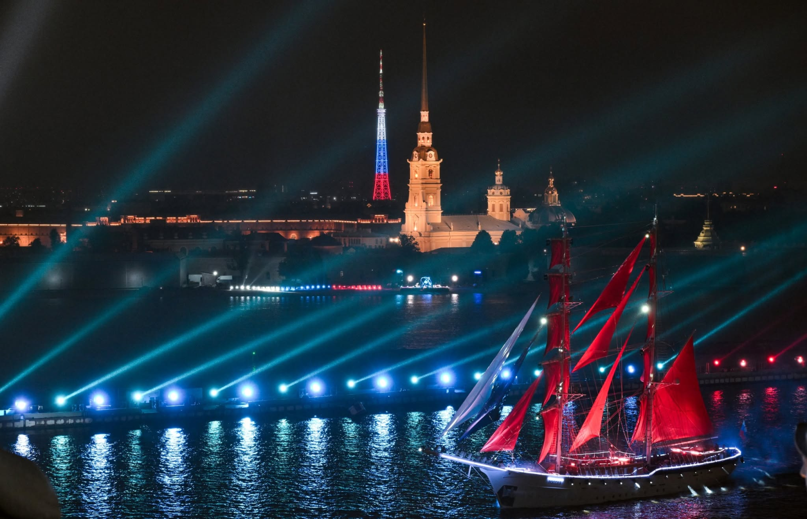 Khi nhắc đến trải nghiệm lễ hội Scarlet Sails, nhiều người sẽ nghĩ ngay đến khoảnh khắc con tàu với cánh buồm đỏ thắm lướt qua mặt nước trong ánh sáng rực rỡ của đêm Saint Petersburg. Nhưng sức hút của sự kiện này không chỉ nằm ở một hình ảnh biểu tượng, mà còn đến từ toàn bộ không khí lễ hội được dàn dựng công phu: sân khấu âm nhạc lớn, hiệu ứng ánh sáng trên nền kiến trúc cổ kính, màn pháo hoa hoành tráng và cảm giác náo nhiệt của một thành phố gần như không ngủ trong mùa hè.