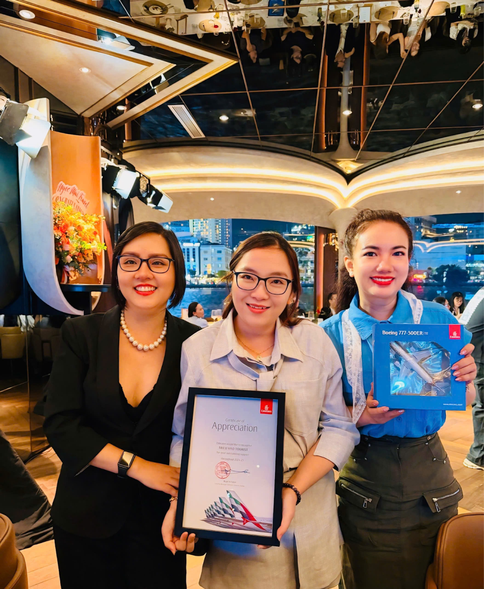 Việc được Emirates – một trong những hãng hàng không cao cấp nhất thế giới – vinh danh là minh chứng rõ ràng cho uy tín và chất lượng dịch vụ mà Du Lịch Triều Hảo đã xây dựng trong nhiều năm.